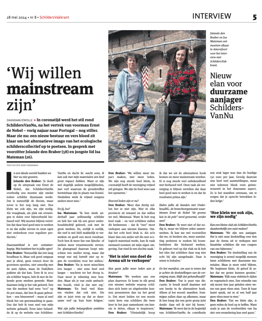 Bestuursleden Jolande den Braber & Isa Mateman werden in mei geïnterviewd door de SchildersVakkrant over hun deelname aan de Schilders van nu.